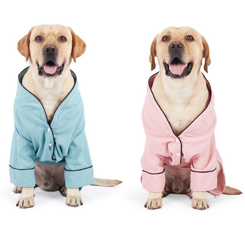 Dog Clothes Soft Sleep Wear Bath Shower Bathrobe Pet Male Female Costumes Dress Solid Doberman Bulldog Pajamas Blue Loose Style
