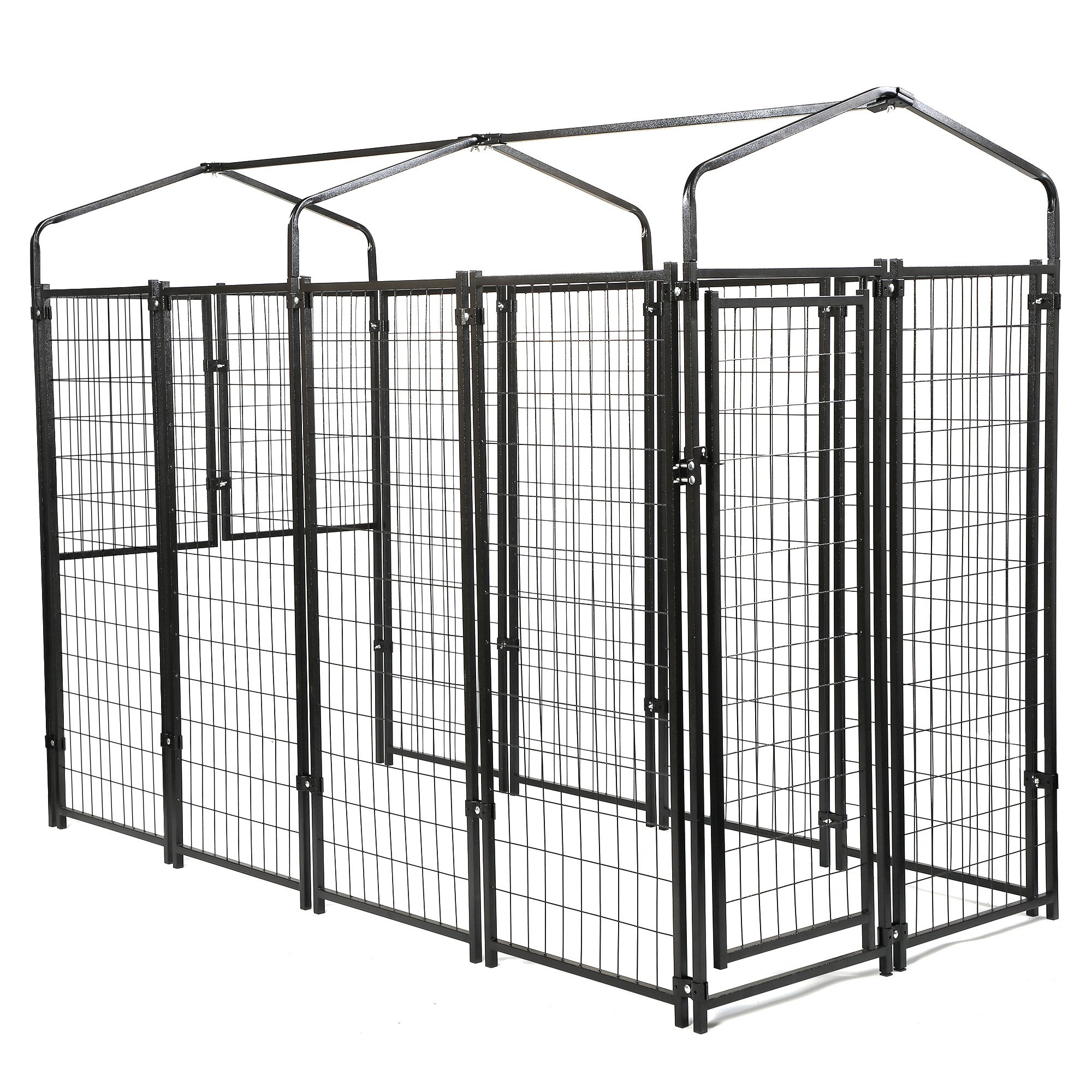 [Spacious Inner Area]: Measuring 6.9' x 3.3' x 5.6', this dog kennel with a lockable gate offers your furry friend a safe paradise to roam around, lie down or exercise.